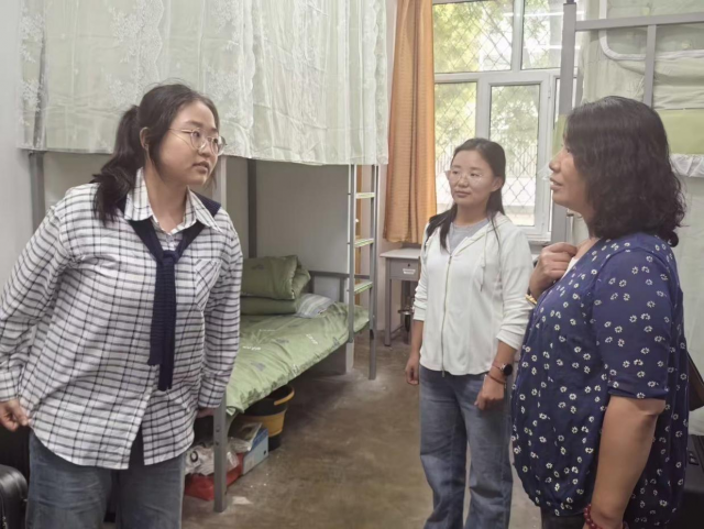 走访过程中,学院领导细致查看了各宿舍的卫生状况、物品摆放、用电安全及门窗锁闭情况,对新生宿舍进行悉心指导。总体来看,各宿舍环境整洁,物品摆放有序,展现出同学们积极向上的精神风貌。学院领导与同学们亲切交流,耐心询问大家的入住体验和生活需求,并叮嘱同学们要重视宿舍安全,合理规划作息,保持健康的生活习惯。