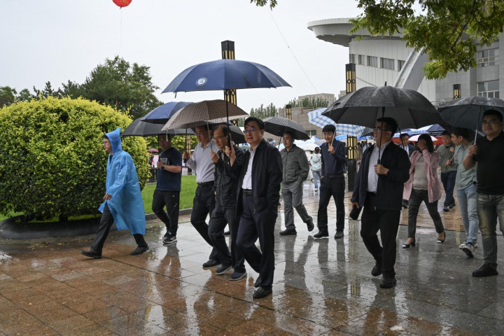 9月5日清晨持续降雨,师生依然坚守一线,冒雨投入工作。校党委书记赵水明、校长姚丽英、校党委副书记张卫国等校领导先后到学院现场视察,详细了解报到进展,并对学院迎新工作给予充分肯定。