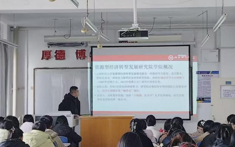 在会上,申老师主要围绕研究院在资源型经济转型领域的学科特色、研究方向、人才培养模式、师资力量以及招生政策等内容展开讲解,让同学们更加全面了解该研究院的优势与发展前景,助力同学们在专业选择和学术发展上明确方向。