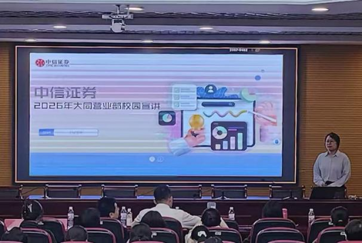 宣讲环节里,中信证券合规总监冯菲围绕企业发展历程、核心业务布局及招聘岗位画像展开介绍,清晰解读岗位任职要求、薪酬体系与晋升通道;校招生代表李冉结合自身经历,分享业务实操场景、团队协作模式与个人成长路径,帮助学生具象认知行业工作状态;营业部总经理何君从业务属性、盈利模式等维度,对比解析证券与商业银行的核心差异,同时阐述中信证券的行业综合竞争优势。