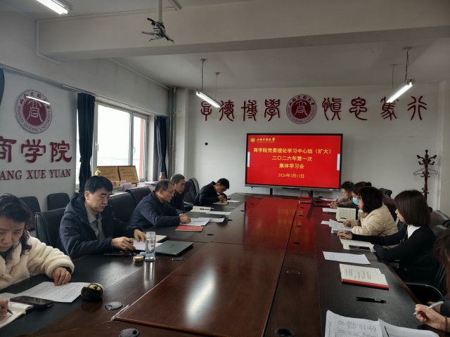 1月13日上午,商学院召开党委理论学习中心组(扩大)2026年第1次学习会议。院党委书记武全主持,学院班子成员、党委委员、系主任、党支部书记、专职组织员、专职辅导员参加学习。