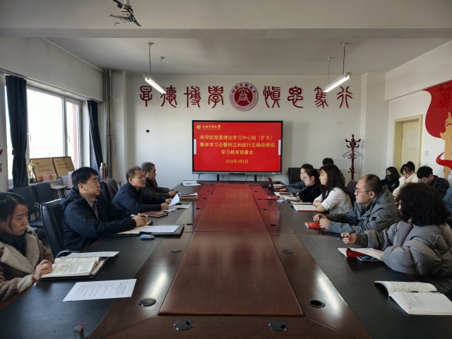3月6日,商学院召开党委理论学习中心组(扩大)学习会,深入贯彻落实中央、省委以及学校党的建设工作领导小组会议精神,对学院开展树立和践行正确政绩观学习教育工作进行动员。院党委书记武全主持会议并讲话。
