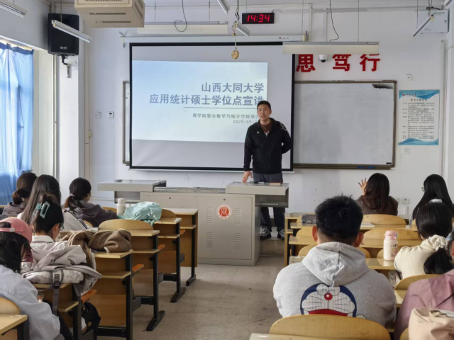 为进一步拓展学生深造渠道,提升研究生教育影响力,2025年9月25日,山西大同大学商学院与数学与统计学院在行知楼711联合举办应用统计硕士学位点招生宣讲会。