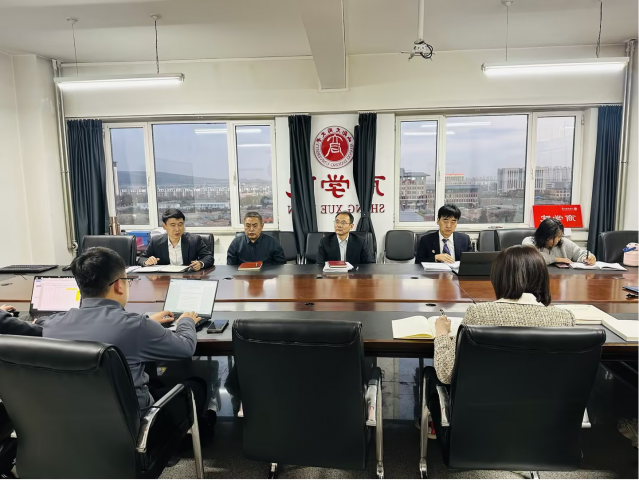2025年10月28日下午,审核评估专家与商学院班子成员在行知楼912室进行了专家访谈。访谈结束后,商学院党委在行知楼804室召开本科教育教学审核评估专家访谈整改推进会,针对专家访谈问题进一步提升整改,为迎接专家进校做好准备。商学院党委书记武全、党委副书记姚占魁、副院长张国卿、副院长李向荣及相关负责人参加会议。