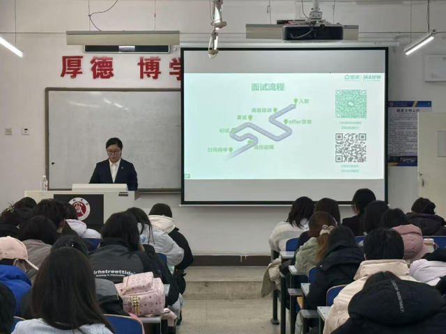 2025年11月17日下午,山西大同大学商学院在行知楼601教室举办北京链家房地产经纪有限公司专场招聘会。北京链家房地产经纪有限公司人力行政中心招聘经理刘嗣清、商学院团委副书记兼就业联系人李婷参加本次招聘会。